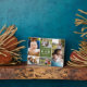 Father's day photo plaque printed with six photos of dad and the kids with the most wonderful dad in the world since the year your oldest child was born written in the middle in white fonts against a dark olive background. Dad will love this photo gift he can keep on his desk at work or on his nightstand with his favourite photos of him and his children spending time together.