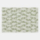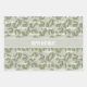 This design background on all three sheets features a green olive and greenery pattern. SHEET ONE features a template text messages in an oval a pattern over the entire background. SHEET TWO features the same template text centred in a row across the sheet length with a template text message pattern and SHEET THREE has a template text message tiled across the background. Personalise, keep, or remove text on three custom designed sheets for a special occasion.