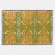 A quality printed throw has its advantages. This is a much finer weave throw than its loopier cousins, and though lighter, it is worth the investment for custom room accessorizing. The back is much prettier than the typical brown, and the fringe on the long sides very vivid, the selvage nicely done. Before photographing, I washed the throw in cold water, delicate, with a thicker woven throw the same size. On tumble dry low, this throw was dry in half the time as the other. This is a very practical quality if you use throws for furniture covers or to wrap up in frequently. The sleekness of the fabric makes it a great layer for accenting or protecting without the feeling of sitting on too much stuff. Perfect for napping or when you feel a light chill coming on. The color printing is beautiful and on this fabric, matched the design and color of my Photoshop image. This is an advantage for blending room fabrics and colors. The fringe on the short sides prints the colors from the design image and therefore varies from the side fringe. I streaked a white fractal line through the plaid pattern to give the illusion of weaving. This printed as crisp as an illusory thread, and put some white in the short side fringe, showing another advantage of print vs loomed- for artistic purposes, line lines, detail, and color integrity can be planned and preserved. My loomed throws have color limitations and more of a needlepoint texture. Print throws reproduce an exact image. The throw felt a little stiff straight out of the package, but this went away in the first delicate wash. Of course I searched the wash water for ink or bleeding and there was none.