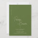 This elegant minimalist wedding invitation features a olive green background with clean white script, blending modern sophistication with a touch of romance. Highlighting the couple's names in stylish typography and accented with a subtle "to have + to hold" detail, it's perfect for contemporary or nature-inspired weddings. Fully customisable, this design offers a timeless way to invite your loved ones to celebrate your special day.