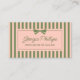 Retro striped business card in blush pink and olive green with a coquette little bow. The feminine look makes the business card perfect for beauticians, boutique owners, event planners, interior designers, makeup artists, hair stylists, jewelry makers, and more. Personalize with your name or business name in a pretty script.