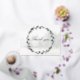 A silver foil Thank You card featuring a soft opaque forest woodland background with an olive branch wreath and the words, "Thank you," in silver foil. The back of the card features the same background imagery with a written sentiment to your guests followed by your names signing off.
