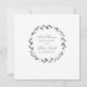 An olive branch canopy chuppah wedding invitation featuring a watercolor painted white chuppah adorned with olive branches with your first and middle names. The back features an olive branch wreath with your names inside.
