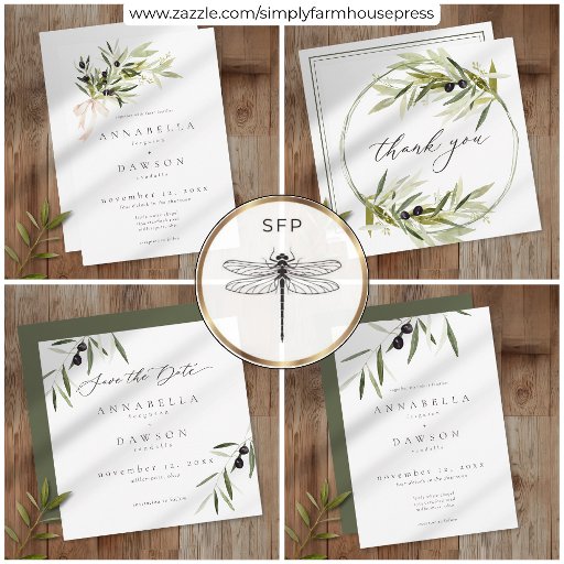 Announce your marriage with this beautiful Olive Branch Watercolor Elegant Minimalist Wedding invitation, featuring olive greenery, dark fruit, and a soft blush ribbon. This minimalist design is perfect for rustic or Mediterranean inspired celebrations, offering elegant style and a timeless look. Fully customizable and a lovely keepsake. Created by Simply Farmhouse Press.