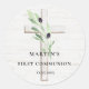 Olive branch white wood Cross First Communion Classic Round Sticker