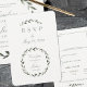 A return mail RSVP with meal choices, featuring a watercolor painted olive branch and wreath with your first and last names inside the wreath.