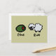 "I love you" reiterated as "Olive Ewe" with matching illustrations provides a creative way of expression. Loved it! Got the matching stickers too. Printing was good, on glossy postcard.