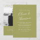 Olive estate photo wedding invitations designed for a refined European garden celebration. Featuring a soft olive background paired with elegant calligraphy and a modern photo layout, this invitation blends 2026 Herb Green trends with timeless manor sophistication. Perfect for outdoor ceremonies, Tuscan-inspired venues, and romantic estate weddings. Showcase your engagement photo while maintaining a classic aesthetic. Personalise to create a cohesive, heirloom-inspired suite.