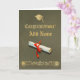 Diploma image on the rich olive background with ornamental decorative stripe, graduation cap and inscription "Congratulations" in distressed gold leaf look. Add name of your graduate or leave blank by deleting Add Name