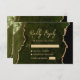 Olive Green Agate Gold Script Wedding RSVP Card