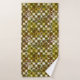 Olive Green and Brown Geometric Square Pattern Bath Towel Set