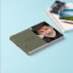 In Loving Memory, Funeral / Celebration of Life photo guestbook, with a simple, minimal, and elegant design with a soft velvety hardcover in an attractive olive green tone, and real foil in stripes, and text details. Ability to change "In loving memory" to "Celebrating the Life of" by using the template text box. Choose from three size options and three foil colours: gold, silver, or rose gold. Personalise it with your loved one information on the front and spine and add on the back any message you like.