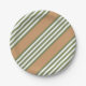 Olive green and white five stripe pattern with tan paper plate