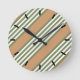 Olive green and white five stripe pattern with tan round clock