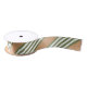 Olive green and white stripes pattern with tan satin ribbon