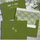 Olive Green checkered Retro Initials Wedding Envelope