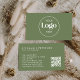 Olive Green Elegant Custom Company Logo QR Code Business Card