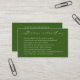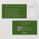 Modern forest green / olive green business cards featuring a simple and minimal design with "aftercare instructions" in an elegant calligraphy along with your instructions on the front. The back has your contact info along with social media icons and an optional QR Code in a minimalist layout. The QR Code may be removed and the social media icons may be changed or removed in the design editing tool.