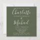 Featuring elegant signature style names, this stylish simple olive green all-in-one wedding invitation can be personalized with all your special wedding day information on the reverse including your RSVP, accommodation, and additional details. Designed by Thisisnotme©