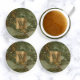 Olive Green Faux Marble Gold Monogram Coaster