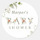 Olive Green Floral Botanical Letter Baby Shower Classic Round Sticker