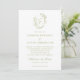 Olive Green Floral Line Art Monogram Crest Wedding Invitation