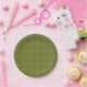 Olive Green Gingham-PAPER PARTY PLATES-Tiny, tiny, squares make up this background pattern of olive green coloured gingham. The gingham patterns are available in assorted background colours. From rustic country and prim gingham to soft pastel baby like colours, several styles are available. Coordinating Zazzle party supplies and gifts are available. Choose any size of Zazzle paper plates available.