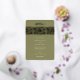 This exquisite wedding invitation is designed with a luxurious olive green background, perfectly complemented by a stunning gold foil floral design. The front of the card features an elegant Islamic script at the top, adding a spiritual touch to this sophisticated piece. The floral motif, rendered in rich gold foil, creates a regal border that enhances the olive green backdrop. The invitation details are presented in a classic serif font, bringing a timeless elegance to the design. The back of the card continues the floral theme with a more subtle, monochromatic olive green pattern, featuring the couple's initials for a personalised touch. Ideal for a traditional and elegant wedding, this invitation blends cultural significance with modern design elements.