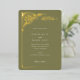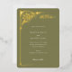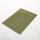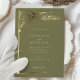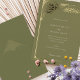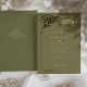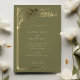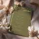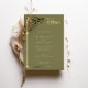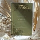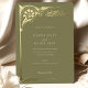 This luxurious Islamic wedding invitation features a sophisticated olive green background, beautifully accented with intricate gold foil details. The front of the card is adorned with a delicate floral motif in gold, paired with elegant script and a traditional Islamic inscription at the top. The refined serif font further enhances the elegance of the invitation, making it perfect for a formal and traditional wedding. The back of the card continues the elegant theme with a subtle olive green design, personalised with the couple's initials. The combination of rich olive tones and shimmering gold foil creates a timeless and regal invitation, ideal for couples seeking a blend of tradition and luxury.