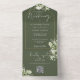 Olive Green Greenery Gold Arch QR Code Wedding All In One Invitation