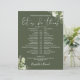 This stylish olive green floral greenery wedding schedule-timeline can be personalized with your wedding details in chic typography. Designed by Thisisnotme©