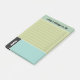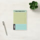 Sticky to do notepads, personalised with your name, for to do lists and daily organising and notes in a practical clean look in olive green, muted turquoise, and matte black with practical checklist boxes to tick when you've completed a task. Personalised to do notepad for him in a blue and green design with muted colours.
