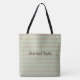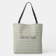 Designer pinstripe market tote in olive green. The background olive colour can be personalised to your favourite colour. The text can be personalised to suit you or a gift. Text is also removable.