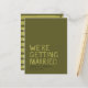 Send love through the mail with this modern olive green save the date postcard, designed with hand-drawn typography and a chic striped back. A unique, minimal option for creative couples who want something different. No envelopes needed!