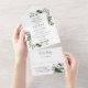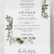 Olive Green Modern Botanical Floral Wedding All In One Invitation