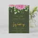 Olive Green background and gold, rose gold or silver foil lettering watercolor roses wedding invitation template design ready for you to customise. This elegant foil wedding invitation design features roses and text in a handwritten font. You can personalise this invitation with your own details and colours.