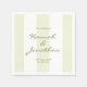 Set the tone for your special day with this timeless and sophisticated wedding napkin featuring soft sage green vertical stripes and a casual handwritten typography. The delicate color palette creates a fresh, romantic feel, perfect for an outdoor summer venue.