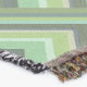 A quality printed throw has its advantages. This is a much finer weave throw than its loopier cousins, and though lighter, it is worth the investment for custom room accessorizing. The back is much prettier than the typical brown, and the fringe on the long sides very vivid, the selvage nicely done. Before photographing, I washed the throw in cold water, delicate, with a thicker woven throw the same size. On tumble dry low, this throw was dry in half the time as the other. This is a very practical quality if you use throws for furniture covers or to wrap up in frequently. The sleekness of the fabric makes it a great layer for accenting or protecting without the feeling of sitting on too much stuff. Perfect for napping or when you feel a light chill coming on. The color printing is beautiful and on this fabric, matched the design and color of my Photoshop image. This is an advantage for blending room fabrics and colors. The fringe on the short sides prints the colors from the design image and therefore varies from the side fringe. I streaked a white fractal line through the plaid pattern to give the illusion of weaving. This printed as crisp as an illusory thread, and put some white in the short side fringe, showing another advantage of print vs loomed- for artistic purposes, line lines, detail, and color integrity can be planned and preserved. My loomed throws have color limitations and more of a needlepoint texture. Print throws reproduce an exact image. The throw felt a little stiff straight out of the package, but this went away in the first delicate wash. Of course I searched the wash water for ink or bleeding and there was none.