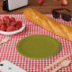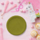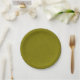 Olive green surface with subtle swirling pattern paper plate