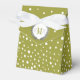 Cute olive green and white polka dot pattern fall wedding favor box with initials and monogram, featuring a refreshing pattern of irregular white dots on olive green background and a delicate laurel branch wreath frame. This trendy and cute, monogrammed favor box adds a touch of personalized elegance to your wedding reception. Fill it with treats, small gifts, or heartfelt notes to thank your guests for sharing your special day. The classic dots and personalized monogram create a memorable keepsake they'll cherish long after the celebration. Perfect for other special occasions too such as bridal showers, birthday parties, baby showers etc.