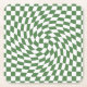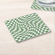 Olive Green & White Warped Chequered Pattern Square Paper Coaster