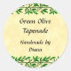 An elegant border of green olive leaves on a light, faux parchment background. for your custom projects. Just add your own name or personal text to use this design for olive tapenade, homemade soap labels, canning jars or tags. Click Customise It to change fonts, sizing, background, even save your design for later!