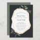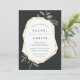 Our elegant botanical Olive Leaf wedding invitation frames your wedding details with a chic gold geometric border, with hand drawn olive leaf illustrations peeking out at the corners. Modern lettering in inky off-black completes the look. Invitations reverse to solid dusty olive green.