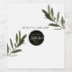 This design features olive leaves and branches. The beautiful greenery of the olive leaves compliment the elegant black modern circle shape encircling the wedding date. A perfect fusion of modern and chic with rustic olive colours. Olive green, black and white are a perfect match for a Mediterranean themed wedding. Unique wedding wine label design with modern elements. Matching wedding invitations and other stationery items are also available.