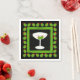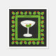 These party cocktail paper napkins will be a hit at your party or other event. The napkins are created with original art of a vintage olive martini drink beverage on black background with a green border surrounded by green olives with red pits. The drink is outlined with grey lines and has two olives. This original art is by Phyllis Dobbs and coordinates with other martini products and other retro drink art selections. Great for someone who loves dirty martini drinks. Fully customisable.