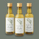 Customisable minimalist modern olive oil wedding favour bottle labels. Featuring watercolor olive foliage on a light olive green background.