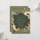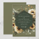Embrace a mood of sophisticated romance with this elegant botanical design. A deep olive green background provides a dramatic canvas for soft, creamy buttercream anemones with dark, moody centers. Painterly details and muted foliage create an atmosphere of timeless, earthy charm for your special union.