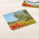 Coaster with an old olive tree in a poppy field full of vibrant red poppies in a landscape in Tuscany, Italy.