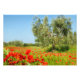 Photo print of an old olive tree in a poppy field full of vibrant red poppies in a landscape in Tuscany, Italy.