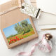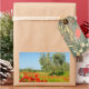 Rectangular photo sticker with an old olive tree in a poppy field full of vibrant red poppies in a landscape in Tuscany, Italy.